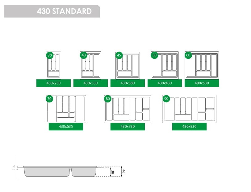Moderný príborník do kuchyne na vloženie do zásuvky. Príborník je vyrobený z odolného plastu.