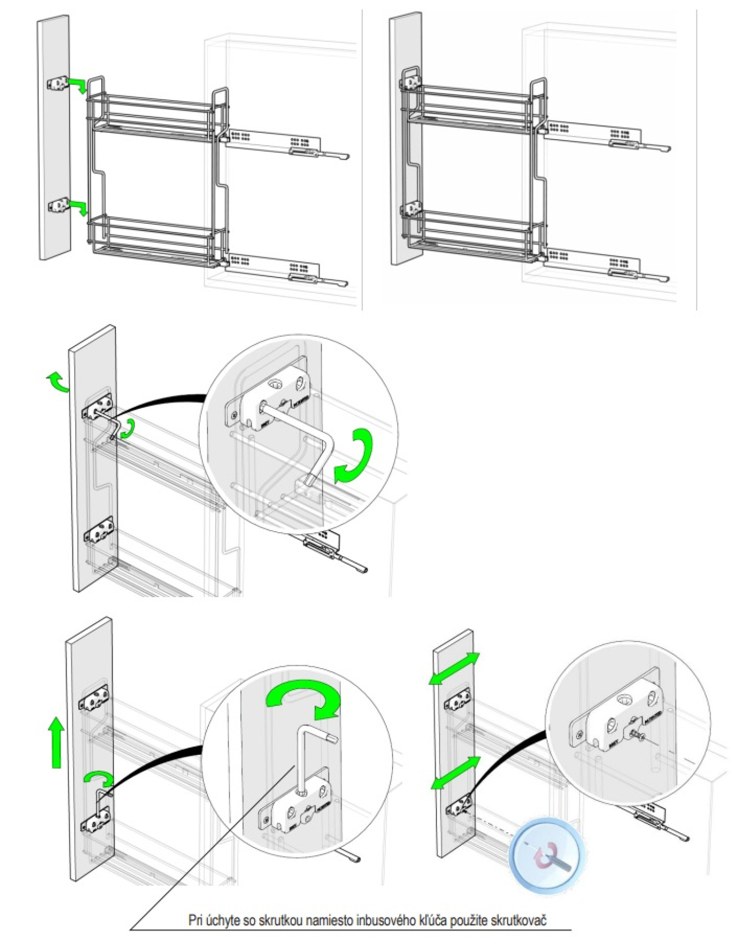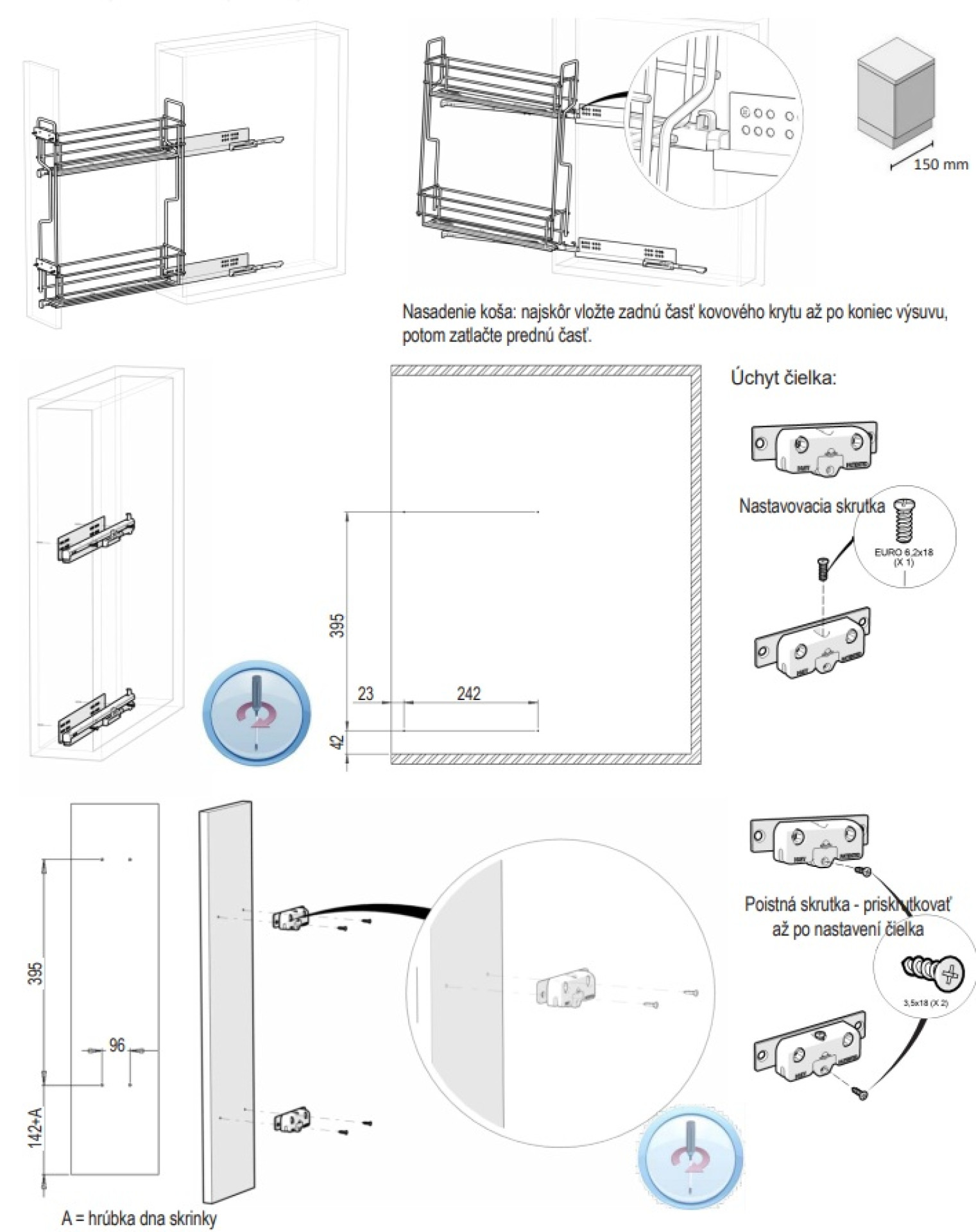 Výsuvný kôš je vybavený 3D nastavením čela.