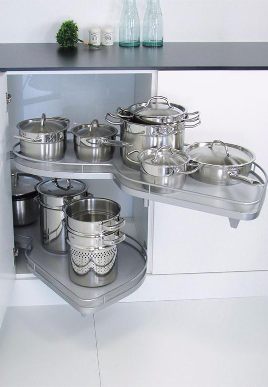 - Úspora miesta: Využite každý centimeter rohovej skrinky.