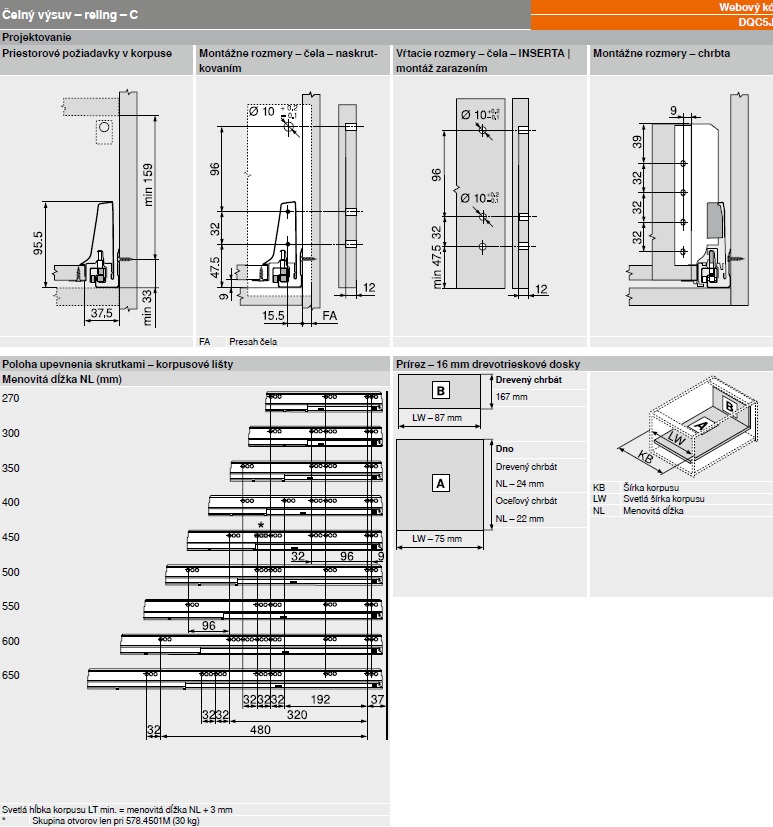 Nosnosť: 65 kg (pre ťažké a široké zásuvky)