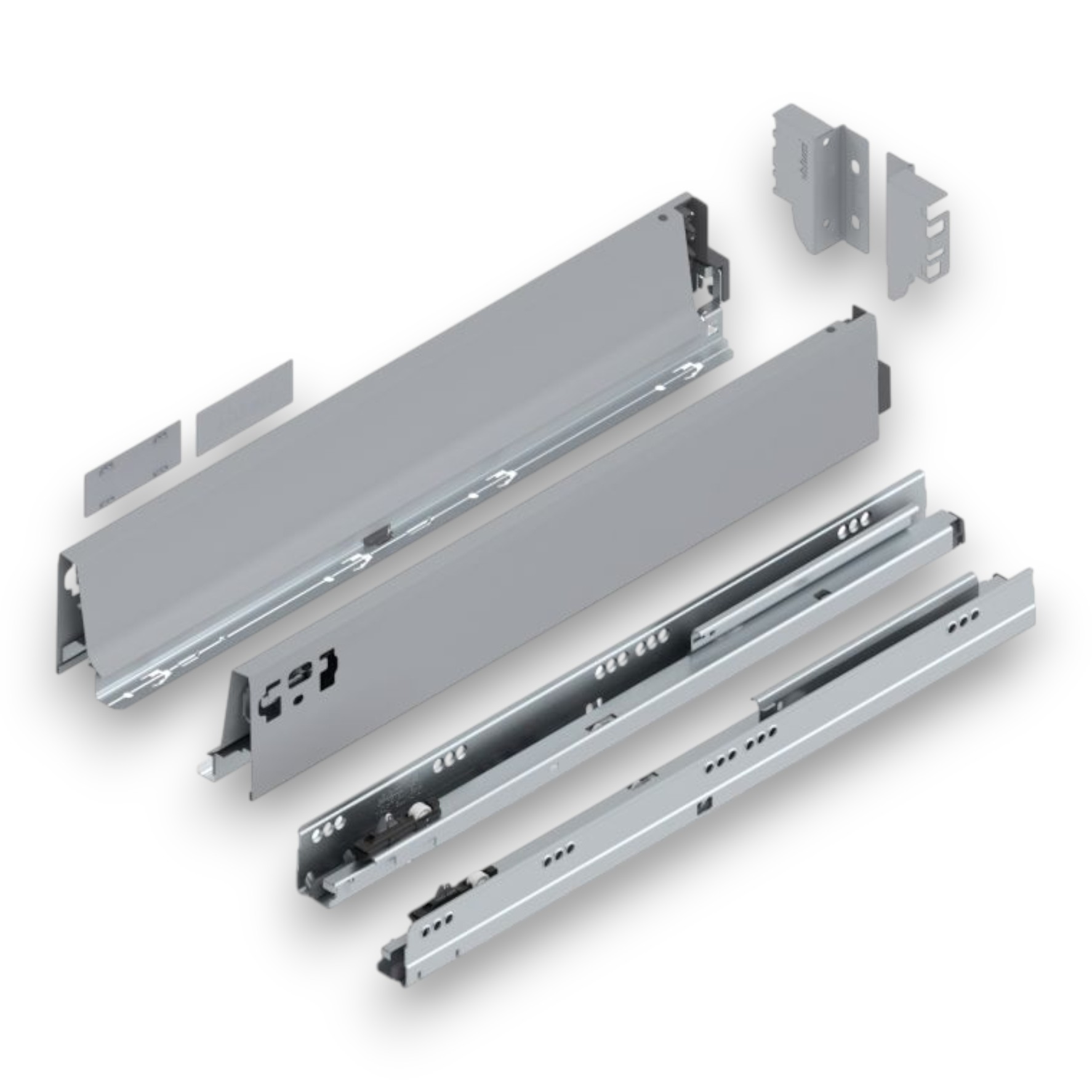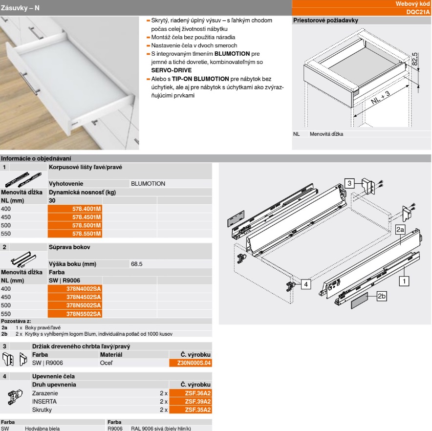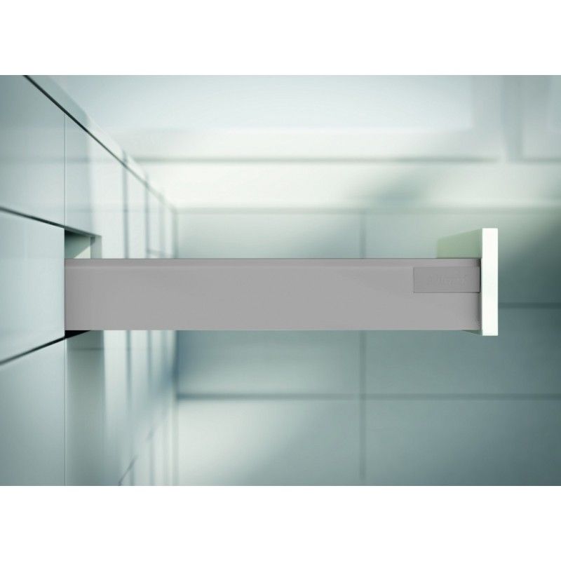 BLUM TANDEMBOX ANTARO, Výška "M", 30 kg, Sivá (RAL 9006) – Kompletná Sada s Tlmením Vytvorte si moderné a funkčné, stredne vysoké zásuvky s kompletnou sadou BLUM TANDEMBOX ANTARO. Elegantné sivé prevedenie v odtieni RAL 9006 (biely hliník) kombinuje minimalistický dizajn s preverenou technológiou pre ľahký chod a komfortné tlmené zatváranie. Ideálne pre univerzálne použitie v kuchyni, obývacej izbe alebo kúpeľni.