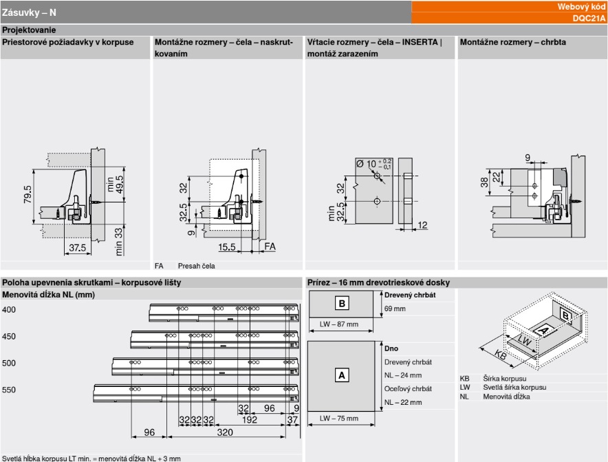 L3: Pre dĺžky 350-650mm a hmotnosť zásuvky 15-30kg (Model L3 je vhodný pre túto 30kg verziu).