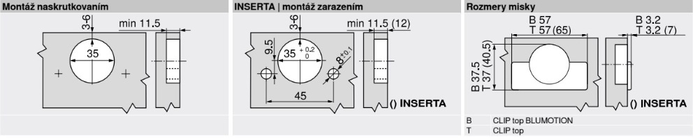 BLUM CLIP TOP 110° 70T3650.TL, POLONALOŽENÝ, BEZ PERA