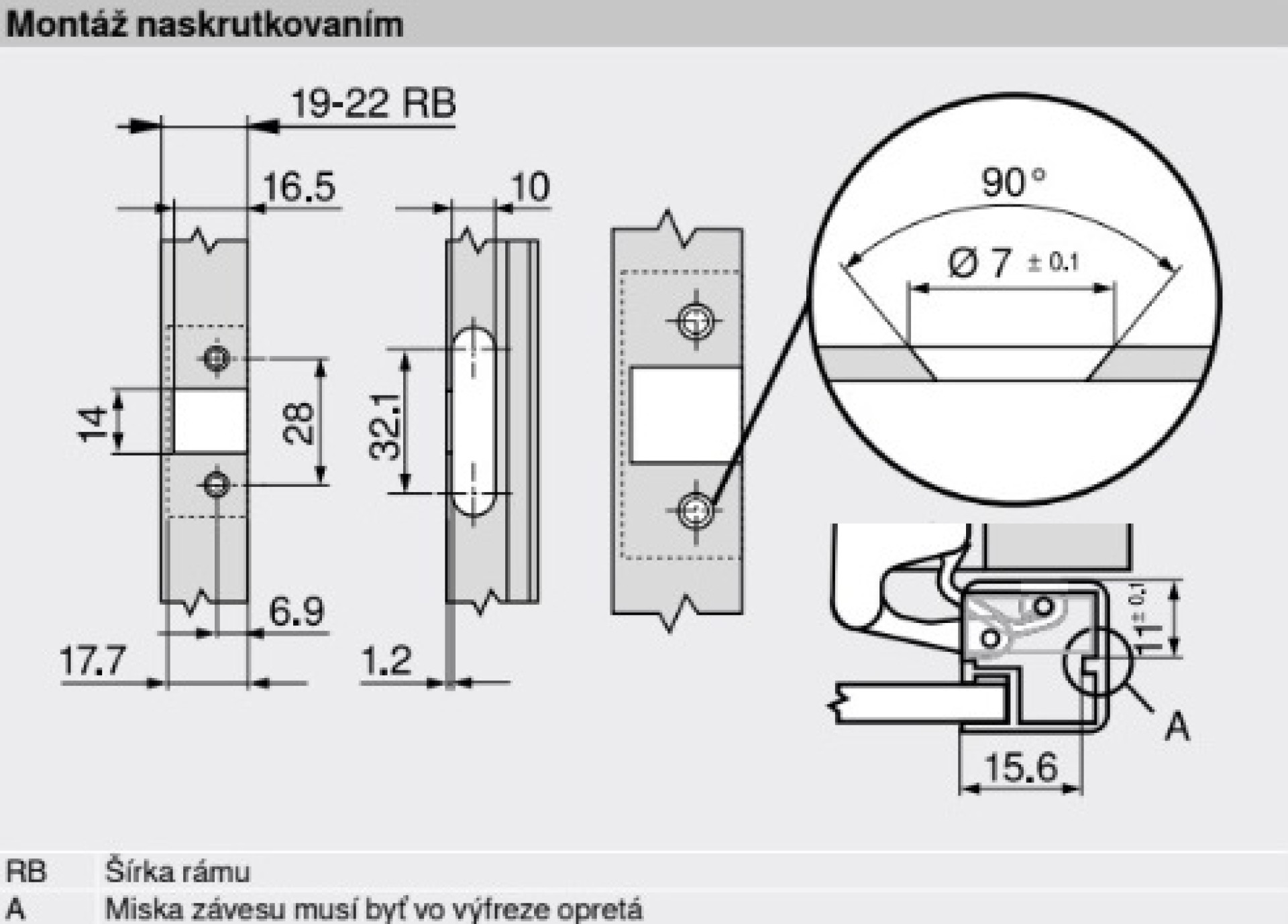 BLUM CLIP TOP 71T950A, NALOŽENÝ, NA ÚZKY ALU RÁMIK, S PEROM