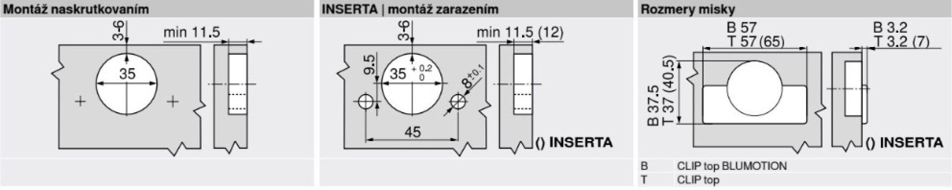 BLUM CLIP TOP 75T1650, 107ST, POLONALOŽENÝ, S PEROM