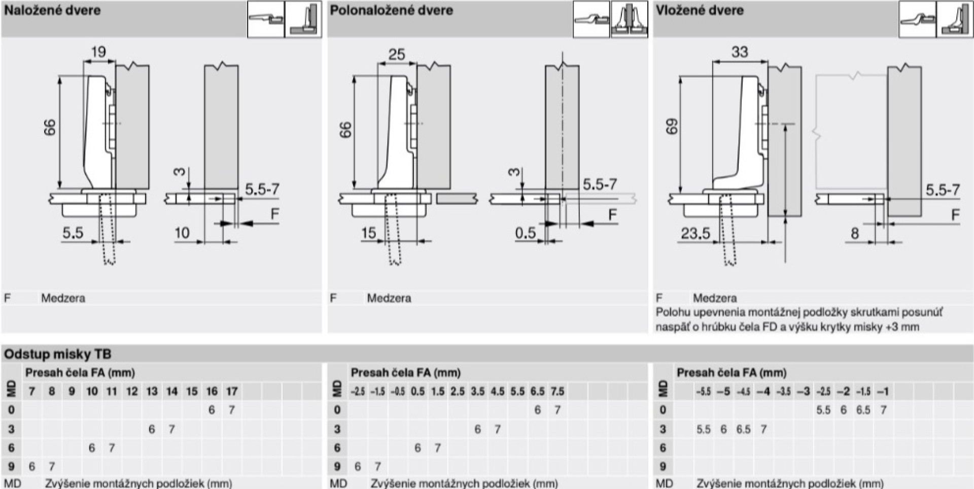 Typ závesu: Polonaložený, Pre sklenené dvere