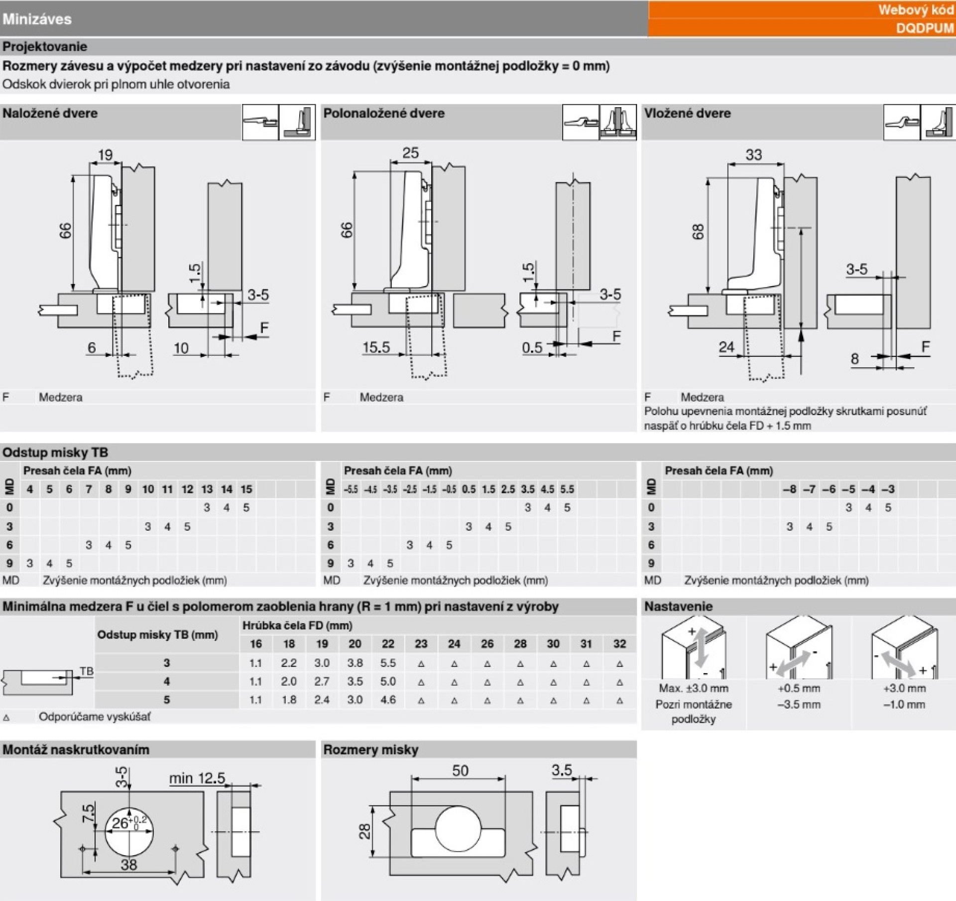 BLUM CLIP TOP 94°MINI 71T0550, NALOŽENÝ, S PEROM