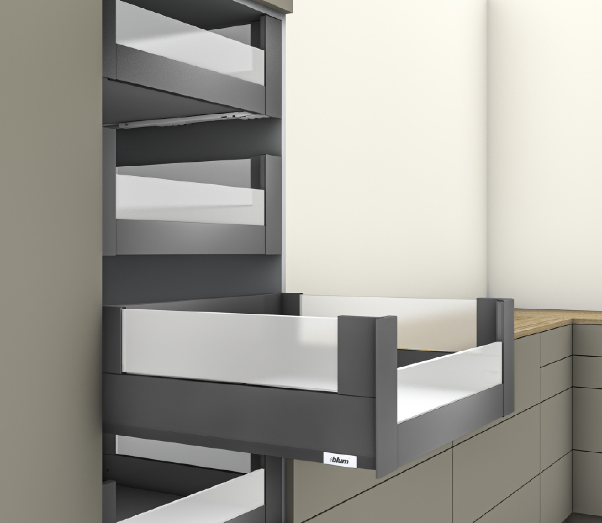 BLUM MERIVOBOX, BOXCOVER BOČNÝ DRŽIAK VÝPLNE, ZL4M00808, INDIUM SIVÁ