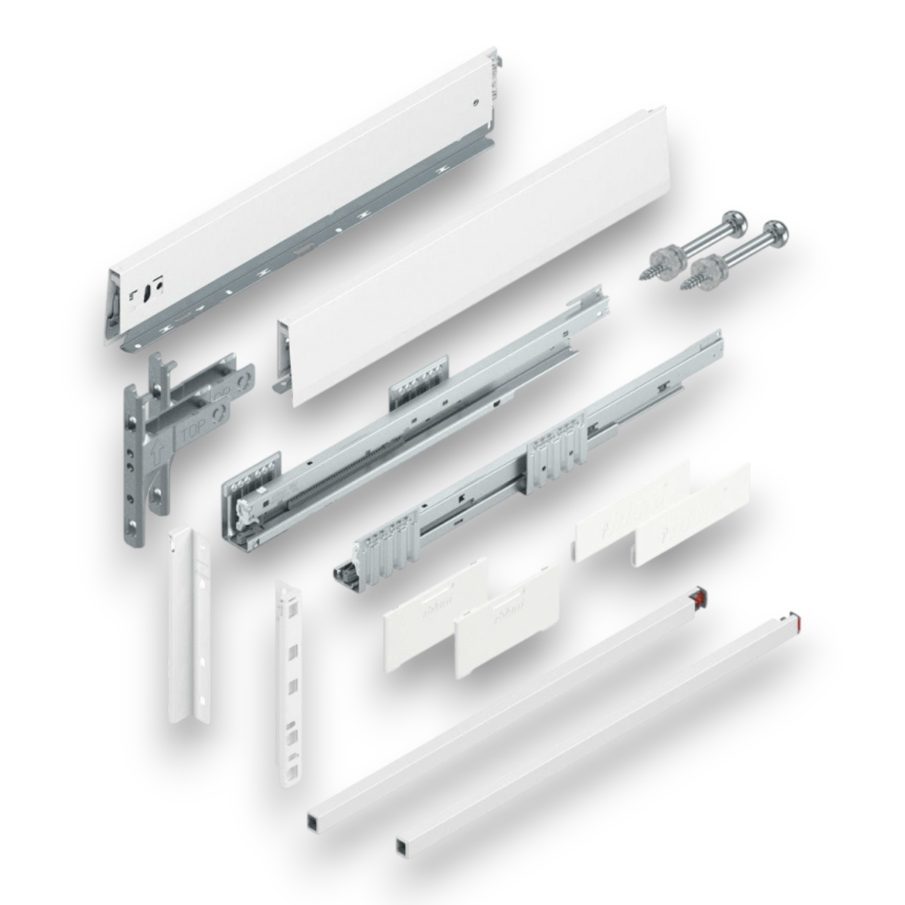 BLUM MERIVOBOX KOMPLET, "E", S RELINGAMI, 40KG, HODVÁBNE BIELA