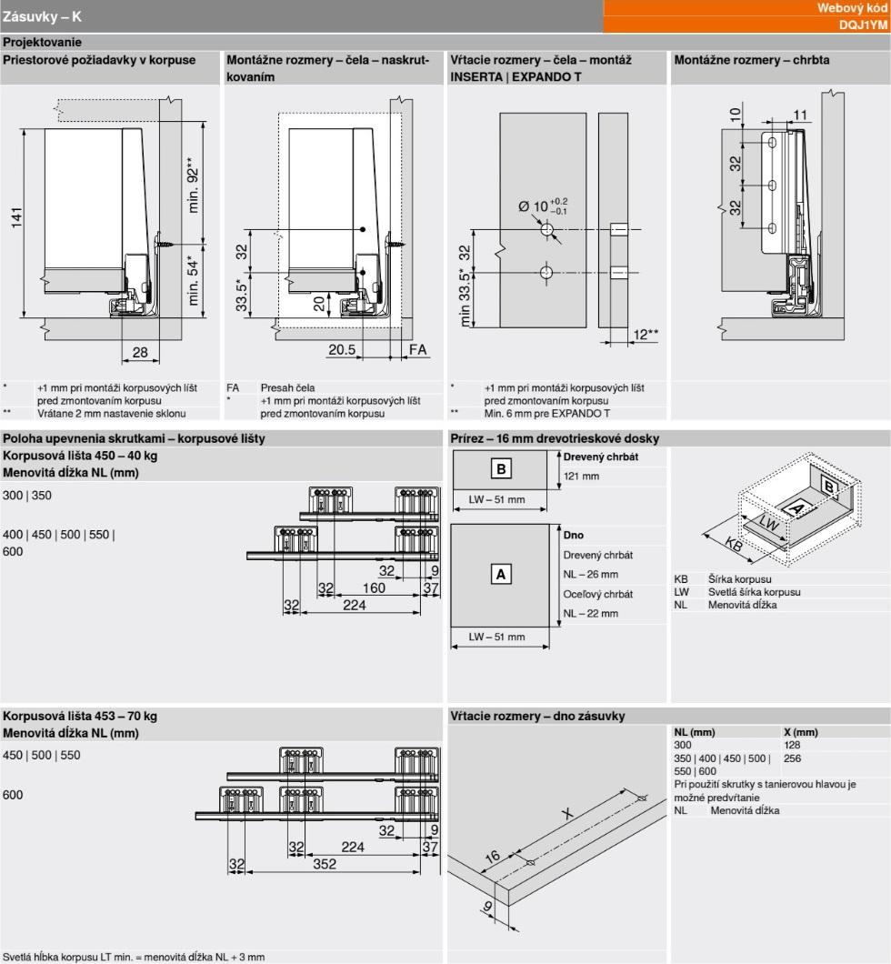 L1: Pre dĺžky 350-650mm a hmotnosť zásuvky 10-20 kg(Odporúčaný model pre túto 40 kg sadu)