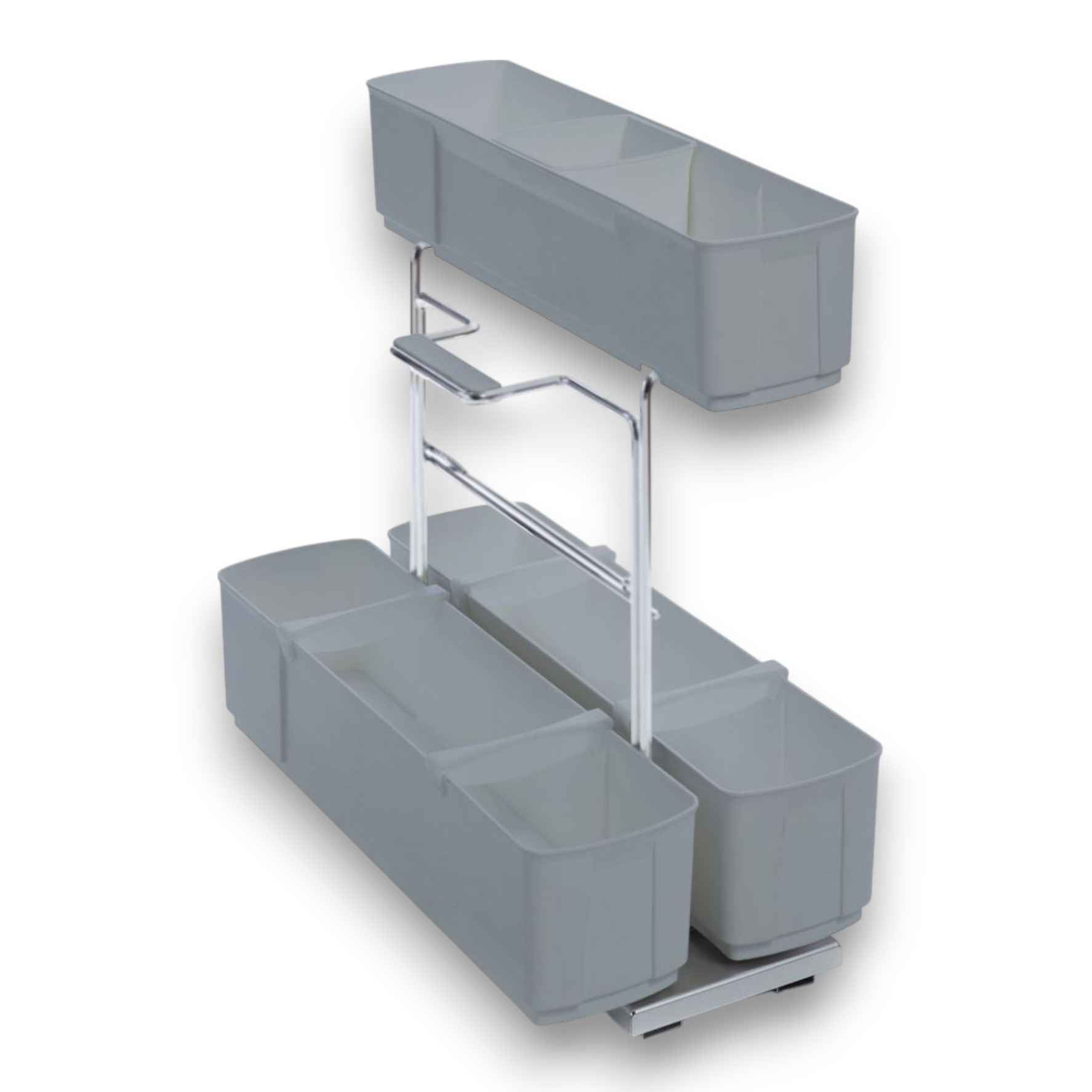 Kompletné riešenie: Systém je navrhnutý pre maximálne využitie priestoru pod drezom (aj pri sifóne), udržiavajúc všetko po ruke.