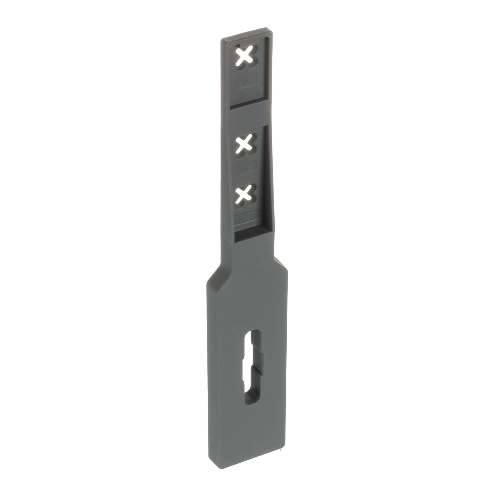 Montážna šablóna na vyznačenie otvorov na inštaláciu relingov do čela zásúvky.