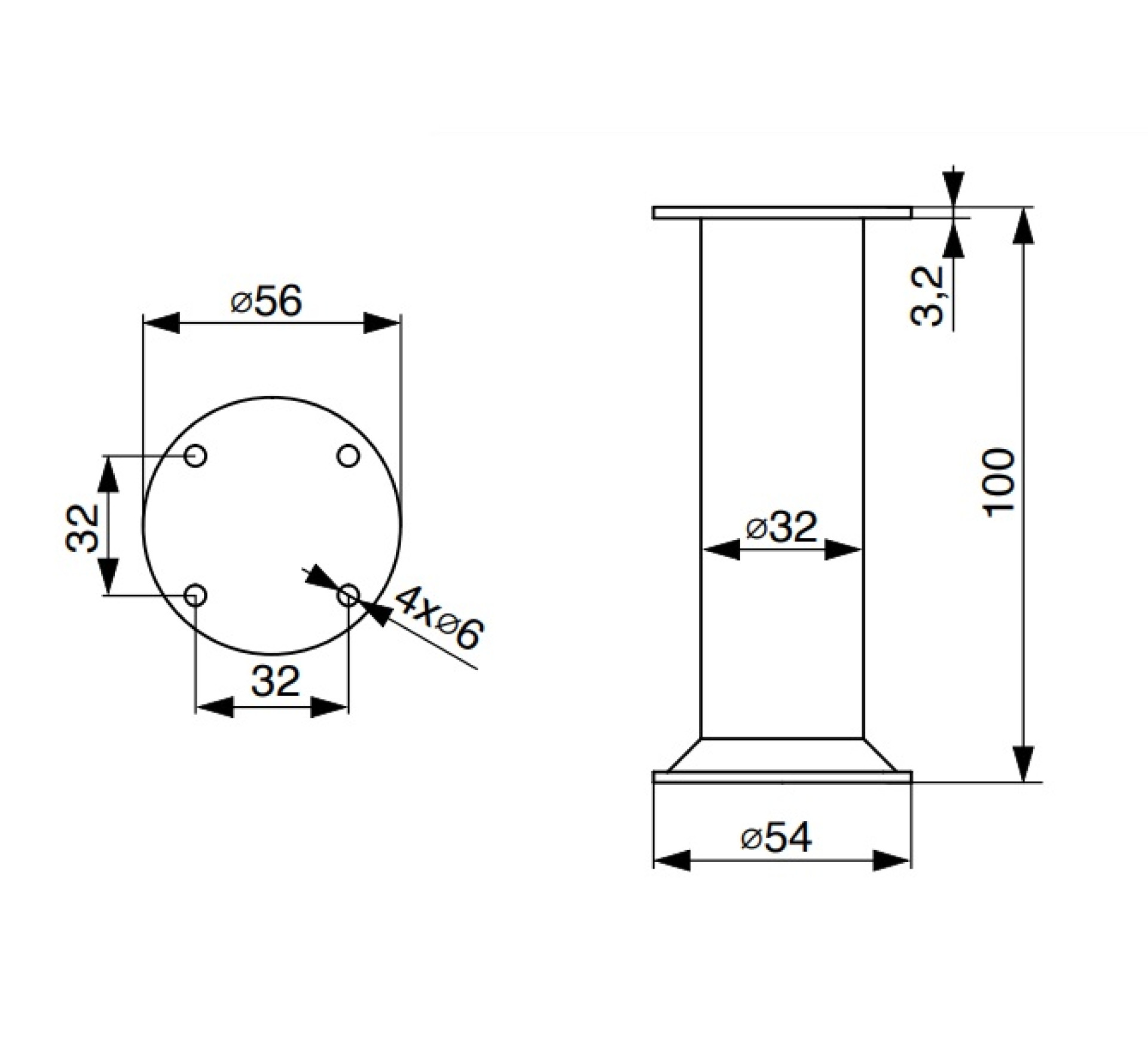 NÁBYTKOVÁ NOHA VALCOVÁ GA63, D32, H100, ELOXOVANÝ HLINÍK+CHRÓM