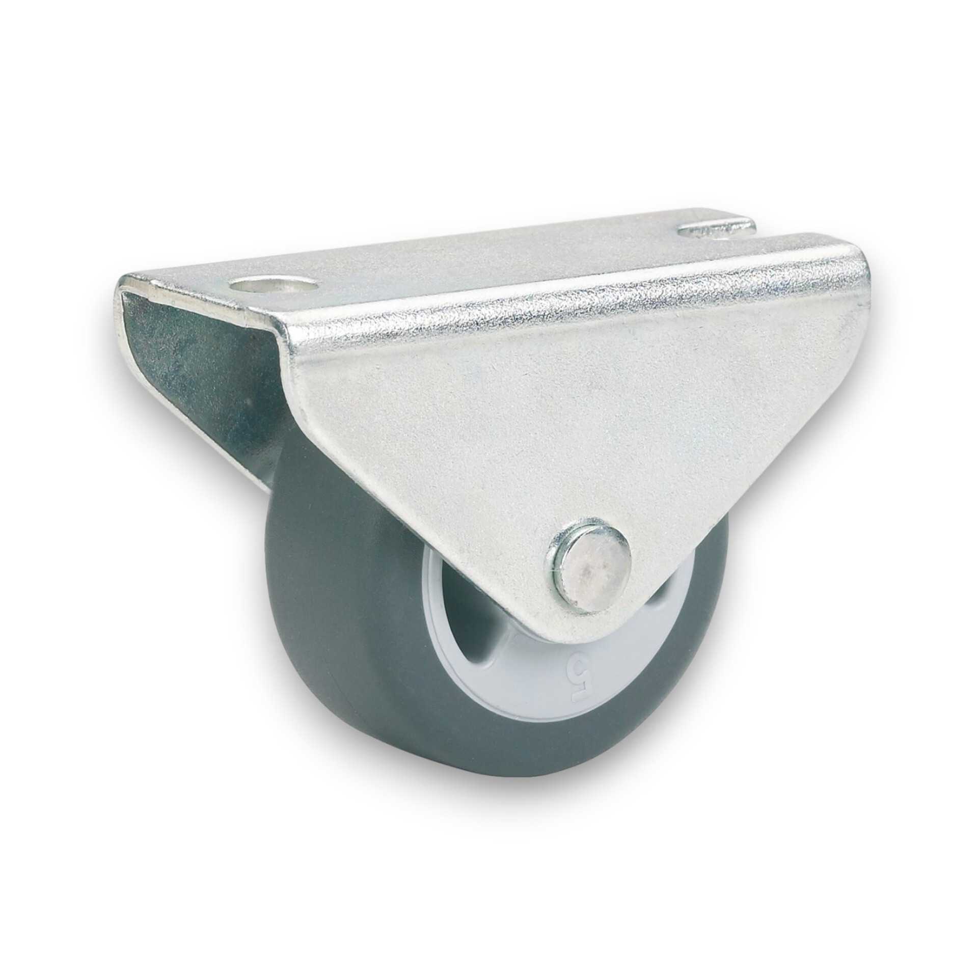 Nábytkové koliesko pevné s mäkčeným behúňom (pre tvrdé podlahy) a kovovým uchytením osi.