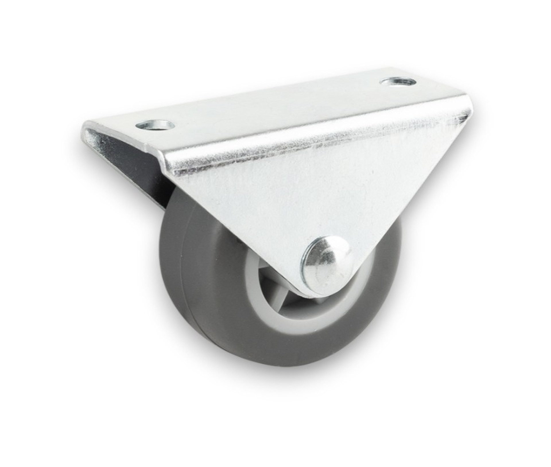Nábytkové koliesko pevné s mäkčeným behúňom (pre tvrdé podlahy) a kovovým uchytením osi.