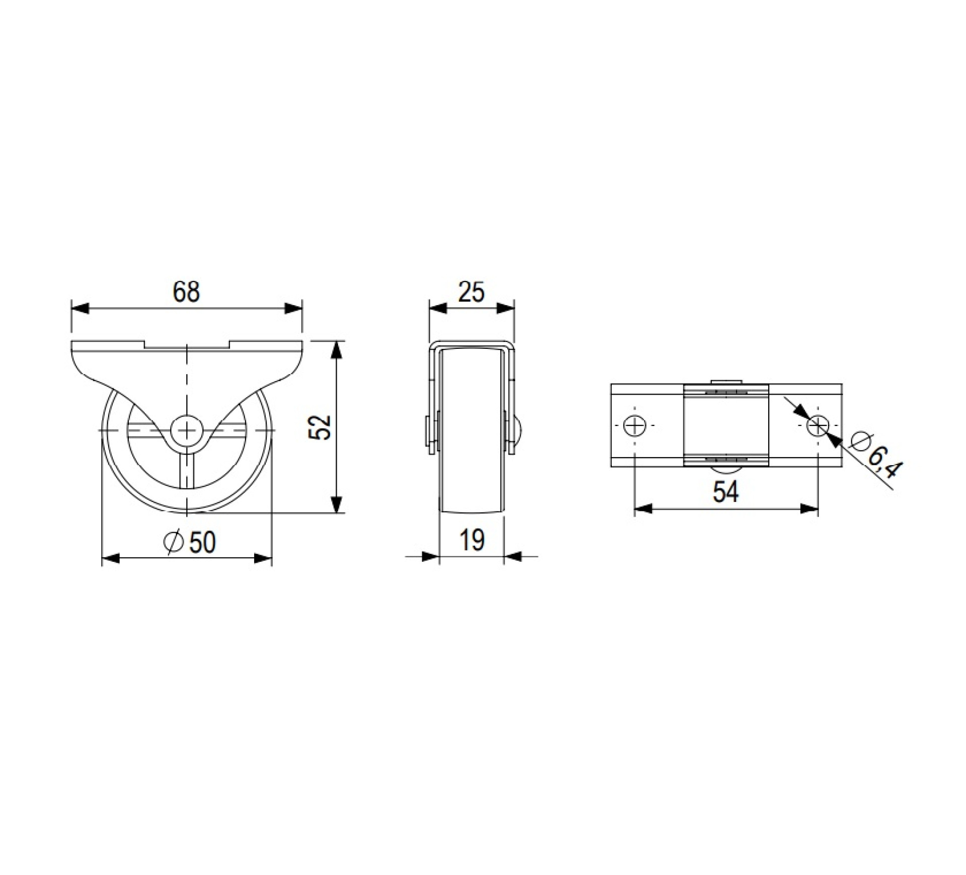 NÁBYTKOVÉ KOLIESKO PRIAME SO SPODNÝM UCHYTENÍM, ø50MM