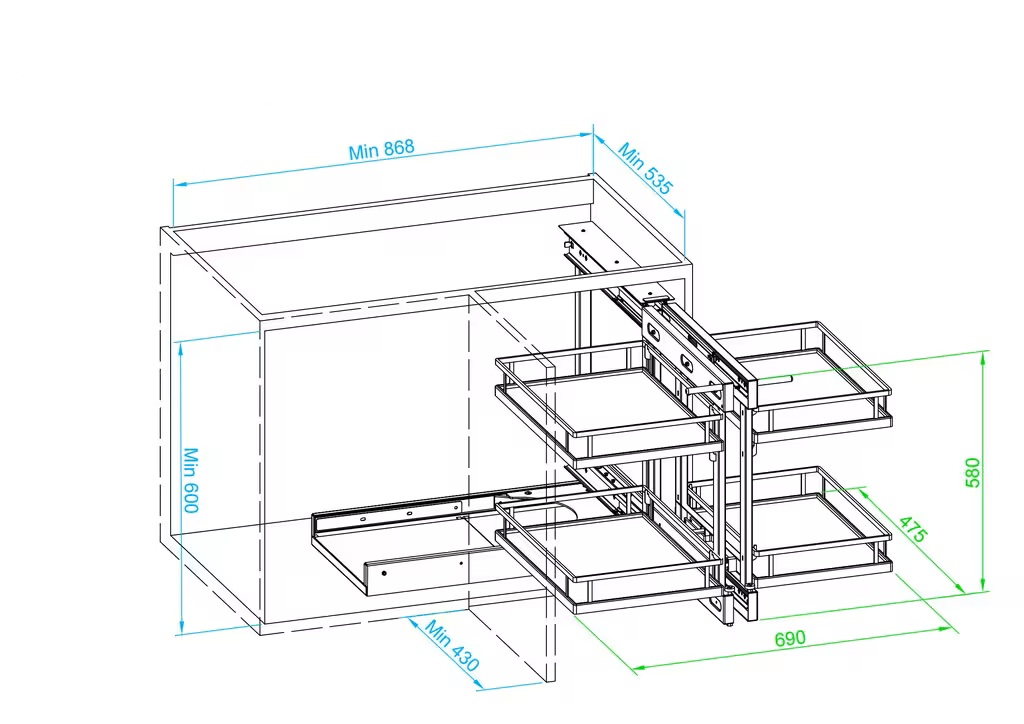 V moderných kuchyniach je každý centimeter úložného priestoru cenný. Jedným z najčastejších problémov býva nevyužitý priestor v tzv. slepých rohoch spodných skriniek. Práve na tieto miesta prichádza s efektívnym riešením Wireli Elegance – výsuvný mechanizmus, ktorý umožňuje jednoduchý a plnohodnotný prístup k inak ťažko dostupnému obsahu skrinky.