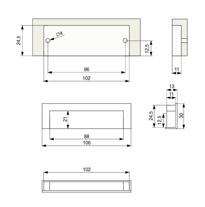 Neviditeľný dizajn: Úchytka sa zapúšťa priamo do nábytkového čela, čím eliminuje vyčnievajúce prvky a vytvára minimalistický a uhladený vzhľad. Ideálne pre moderné interiéry s dôrazom na čisté línie.
